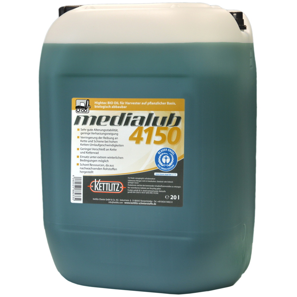 Medialub 4150 ist ein Sägekettenhaftöl auf Basis des nachwachsenden Rohstoffes Rapsöl, ist frei von Synthese- und Mineralöl und wurde speziell für die Verwendung für schnell laufende Hochleistungssägen an Harvester-Aggregaten entwickelt.
